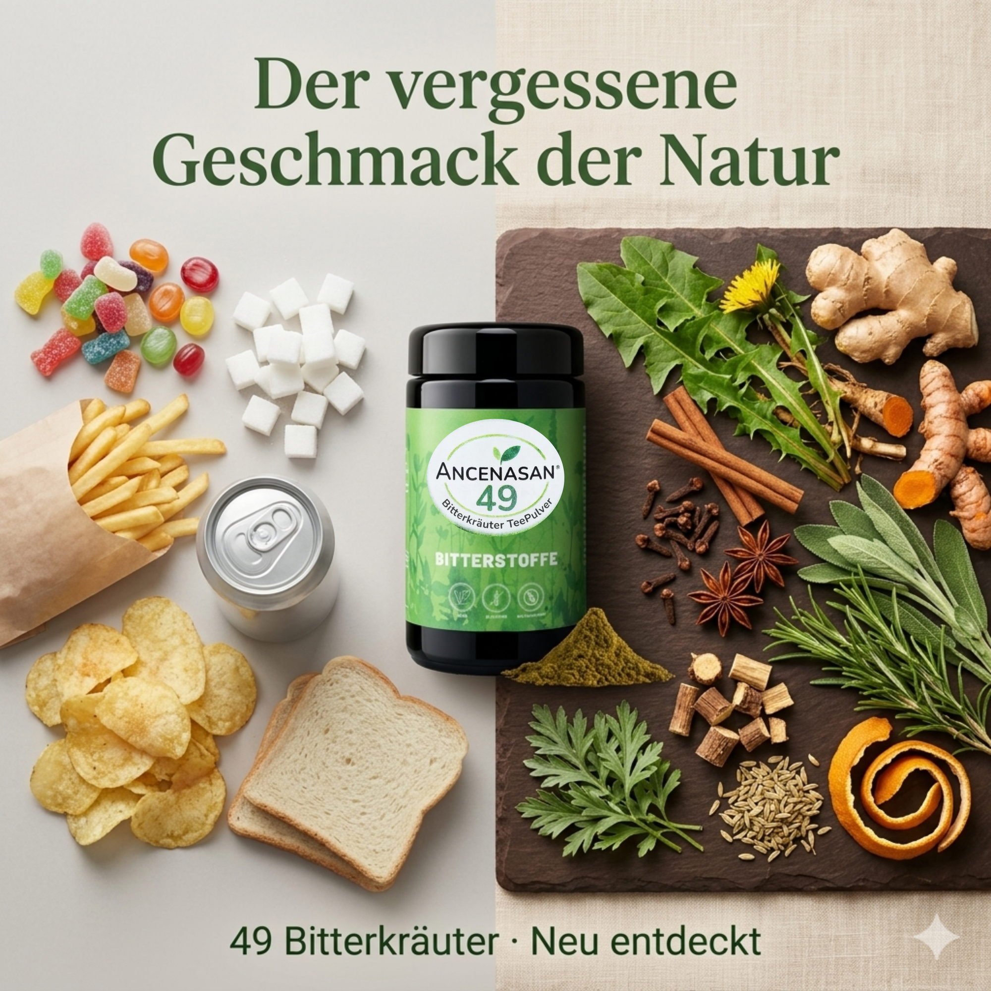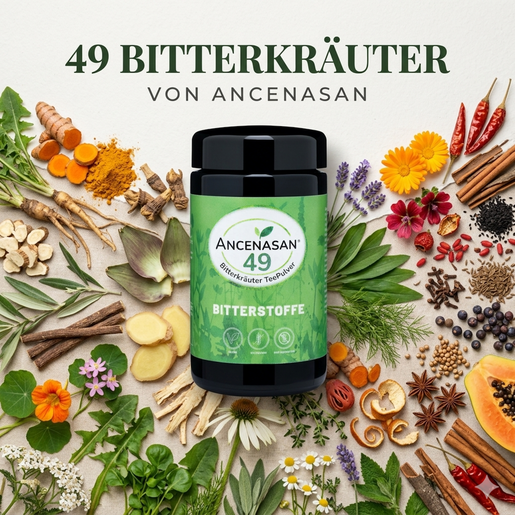Die 49 Bitterkräuter von ANCENASAN® holen natürliche Bitterstoffe zurück in deinen Alltag – damit du sie neu für dich entdecken kannst.