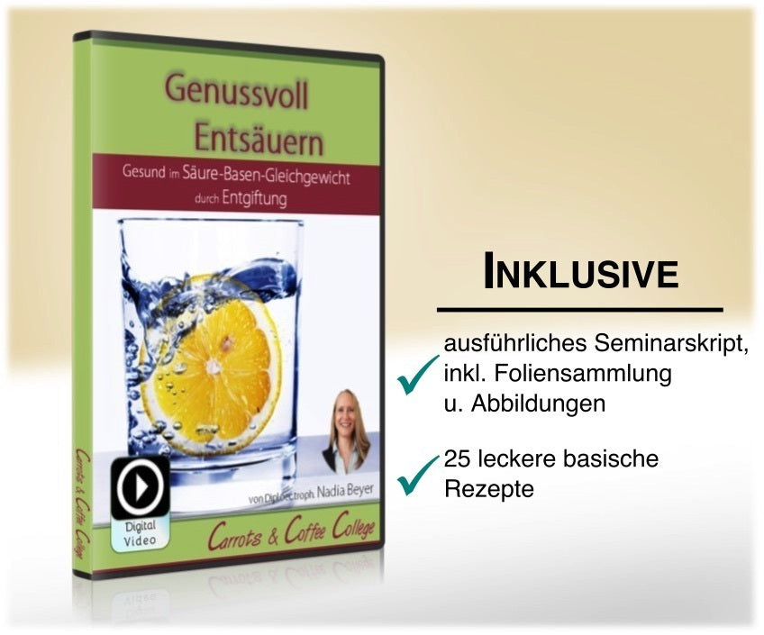 You too can benefit from this video seminar “Healthy Acid-Base Balance” and find out interesting background information on the subject of acid-base balance that is not found in any book and learn how to deacidify most effectively.
