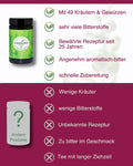 • 49 Kräuter und Gewürze, fein vermahlen, reich an natürlichen Bitterstoffen